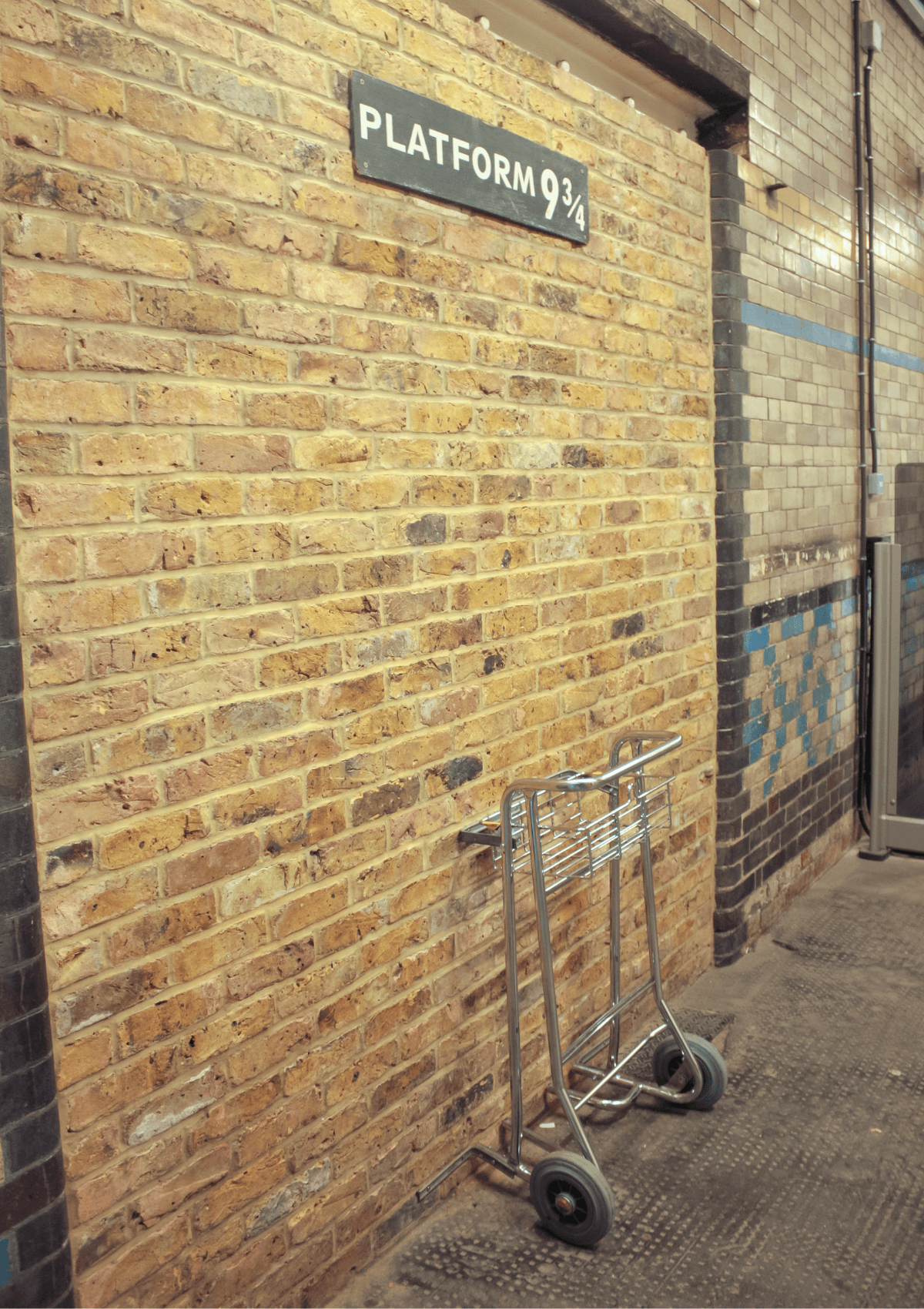 In the books, Hogwarts students reach the platform by running directly through the brick wall between platforms 9 and 10. In the real world this might cause some injuries so don’t actually do it, but it’s fun to pretend!